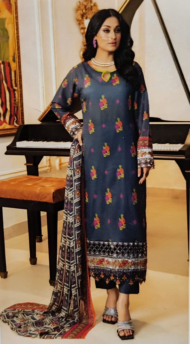 Dark Blue Lawn Suit