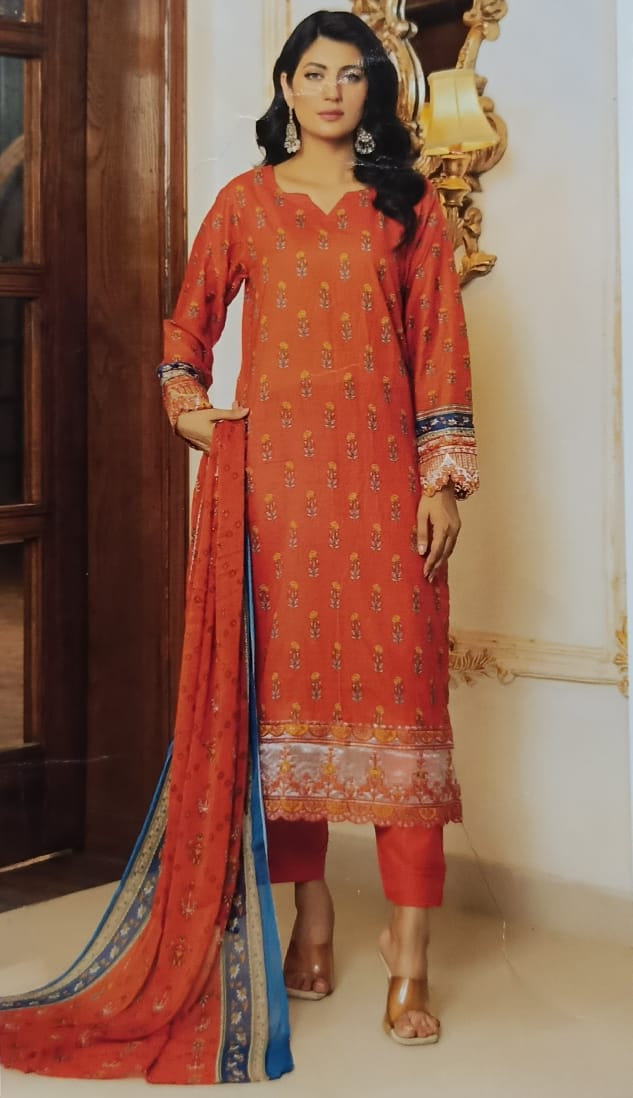 Orange Lawn Suit